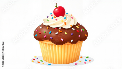 Delicious chocolate cupcake with sprinkles and cherry on top