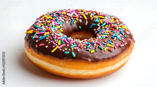 Delicious chocolate donut topped with colorful sprinkles, perfect for dessert lovers. This sweet treat is ideal for celebrations or delightful snack
