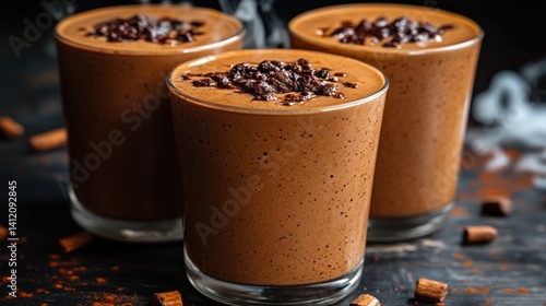 Delicious chocolate drinks with rich toppings in a cozy setting
