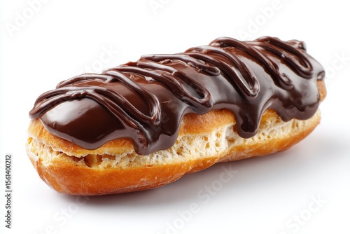 Delicious Chocolate Eclair on White Background in High Resolution Perfect for Culinary Presentation.