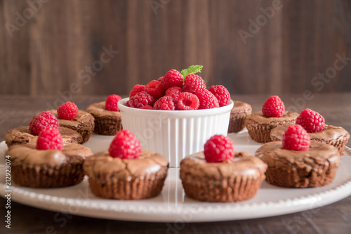 Delicious chocolate lava cakes with fresh raspberries and mint