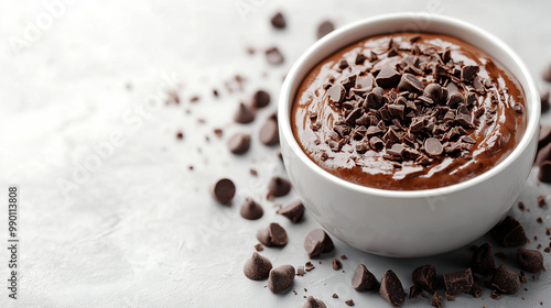 Delicious chocolate mousse topped with chocolate chips, perfect for dessert lovers. Indulge in this creamy and decadent treat.