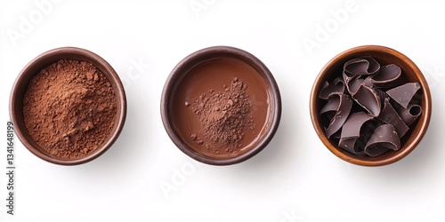 Delicious Chocolate Preparation Ingredients in Bowls Highlighted Against a Bright White Backdrop