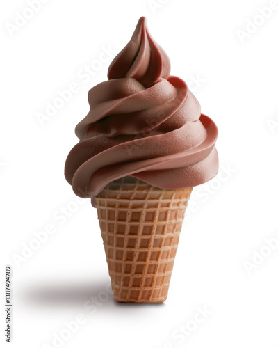 Delicious chocolate soft serve ice cream in crispy waffle cone, perfect for sweet treat on warm day. Indulge in this creamy dessert that brings joy and satisfaction