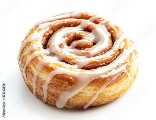 Delicious Cinnamon Roll with Cream Cheese Icing on White Background