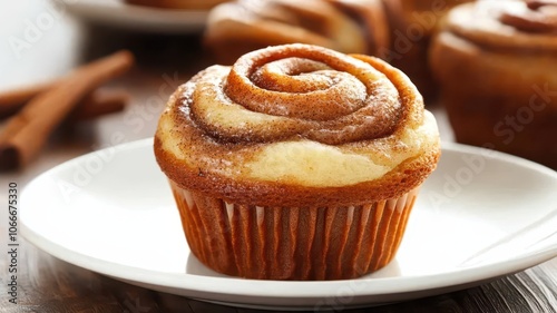 Delicious cinnamon swirl muffin displayed on a clean white background, perfect for bakery and food photography.