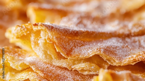 Delicious Close-Up of Crispy Pastry Layers with Sugar Dusting