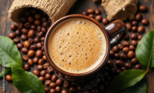 Delicious coffee in a rustic mug