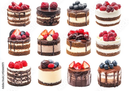 Delicious Collection of Assorted Mini Cakes with Fresh Berries and Chocolate Drizzle for Tempting Dessert Indulgence and Sweet Treat Inspiration
