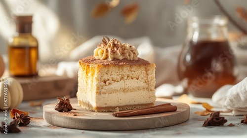 Delicious Creamy Cake Slice with a Cozy Autumn Vibe