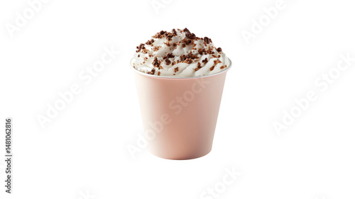 Delicious Creamy Coffee Drink with Chocolate Crumble Topping in a Pastel Pink Cup