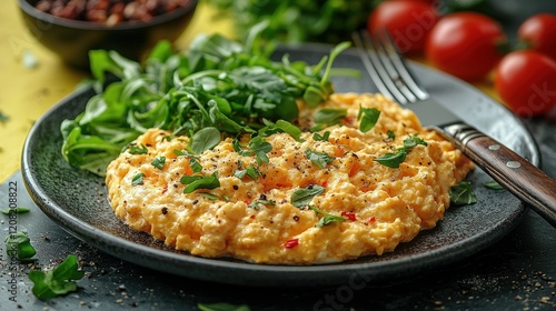 Delicious Creamy Scrambled Eggs with Herbs and Salad