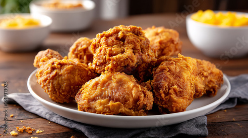 Delicious crispy fried chicken pieces served on a white plate close up