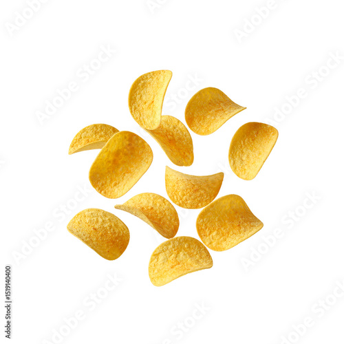 Delicious crispy potato chips falling on oil food diet on transparent background