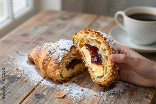 Delicious Croissant with Cream and Jam Filling