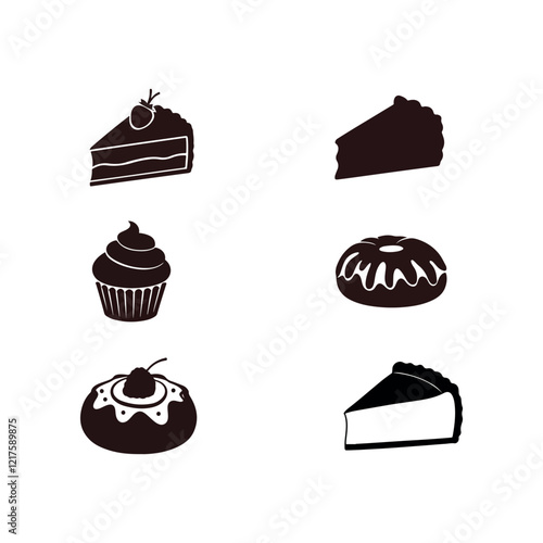 delicious cup chocolate cheese birthday cream cake pudding and bakery baked food item silhouette icon collection set vector art flat design illustrations