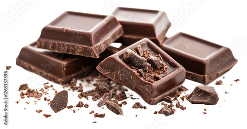 Delicious dark chocolate squares studio setting food isolated on transparent background