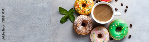 Delicious donuts and coffee on a gray surface food scene casual