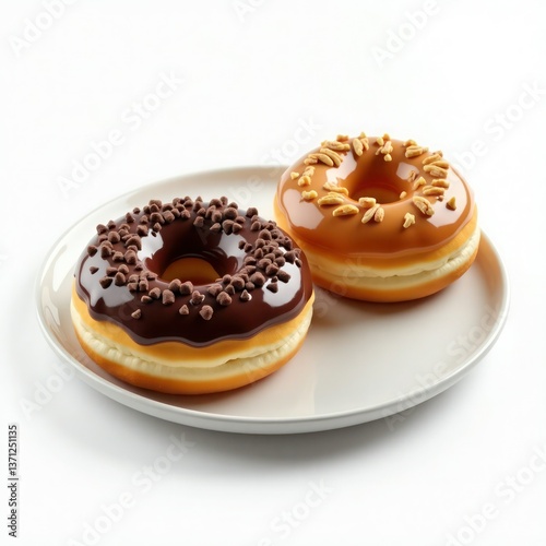 Delicious donuts on a plate featuring chocolate and caramel toppings.