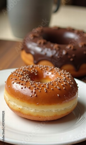 Delicious donuts served on a plate, perfect for dessert menus, bakery promotions, or food blogs, appealing to sweet cravings and snack lovers.