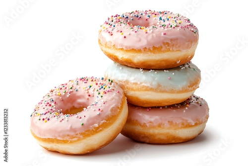 Delicious donuts stacked on pastel background sweet treats soft texture colorful sprinkles