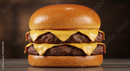 Delicious Double Cheeseburger with Melted Cheese Juicy Patty and Sesame Seed Bun