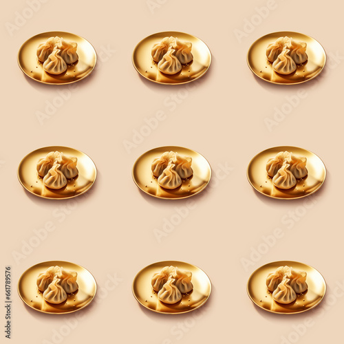 Delicious Dumplings Dim Sum food seamless photo pattern on a solid color background