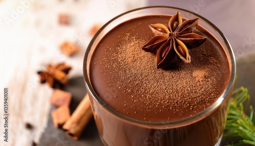 Delicious firefly spiced chocolate mousse topped with star anise and cacao dust, perfect for dessert lovers