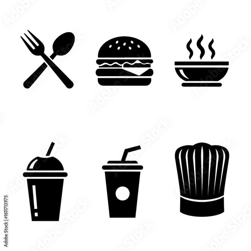 Delicious food icons set for restaurant menu and culinary designs with transparent style