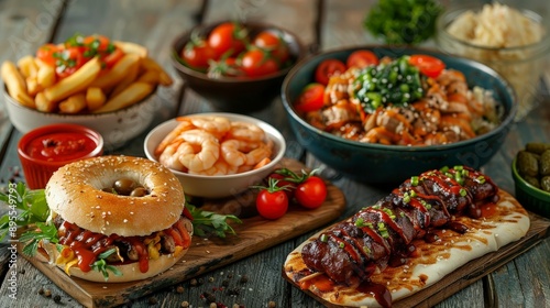 Delicious Food on a Wooden Table.