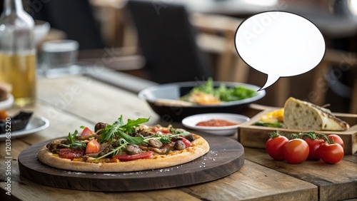 Delicious Food Photography with Empty Circle Speech Bubble for Text Overlay - Perfect for Restaurant Menus or Blogs