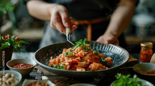 Delicious, fresh Kimchi, beautiful serving, exquisite decor, staged professional photography, food photography