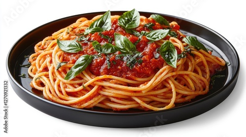Delicious Fresh Spaghetti with Tomato Sauce and Basil Garnish