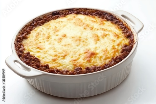 Delicious Freshly Baked Cheesy Dish in a White Casserole Dish
