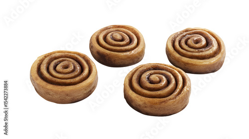 Delicious freshly baked cinnamon rolls arranged on white background for breakfast or dessert