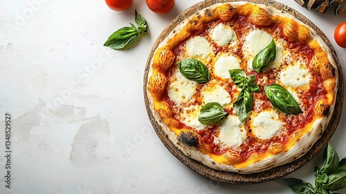 Delicious freshly baked pizza topped with cheese and fresh basil