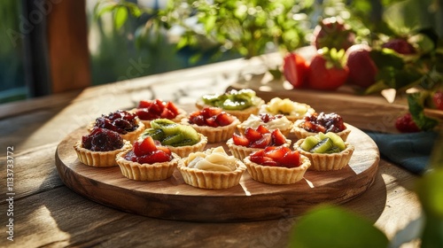Delicious Fruit Tarts with Fresh Berries and Colorful Cream Toppings
