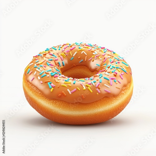 Delicious glazed donut with colorful sprinkles, isolated on a bright white background