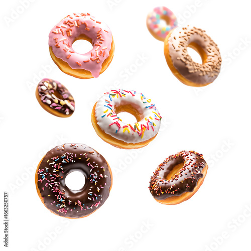 Delicious Glazed Donuts in Various Flavors and Colors