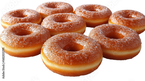 Delicious glazed donuts with sugary sprinkles arranged artfully ready to eat perfect for tempting bakery menus or joyful treats for social media designs.