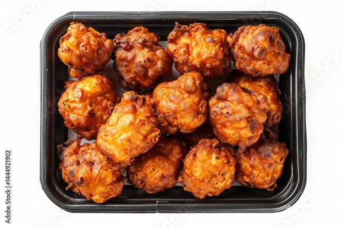 Delicious Golden Brown Deep Fried Snacks in Black Takeout Container