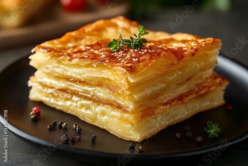 Delicious Golden Brown Puff Pastry Layers with Cheese Sesame Seeds and Thyme