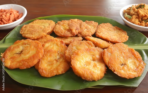 Delicious Golden Fried Banana Fritters on Banana Leaf