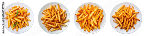 Delicious golden fries served in plates, showcasing variety and presentation.