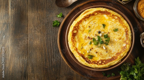 Delicious Golden Pancake with Fresh Herbs and Spices