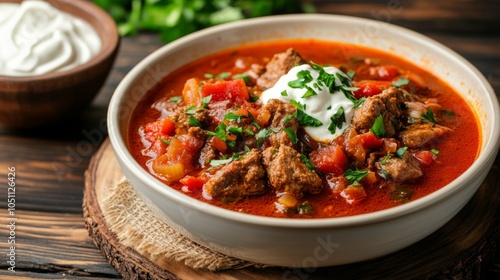 Delicious Goulash with Sour Cream and Fresh Herbs