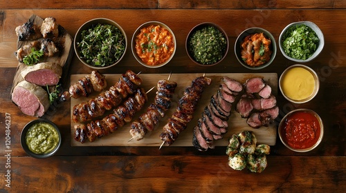 Delicious Gourmet Grilled Dishes Served on Wooden Platter