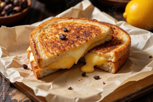 Delicious Grilled Cheese Sandwich with Melted Cheese Close Up Shot
