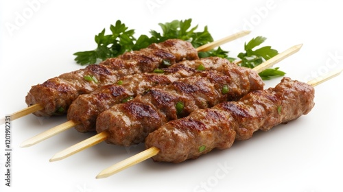 Delicious grilled meat skewers on sticks.