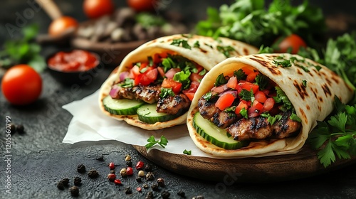 Delicious Grilled Meat Wraps with Fresh Vegetables